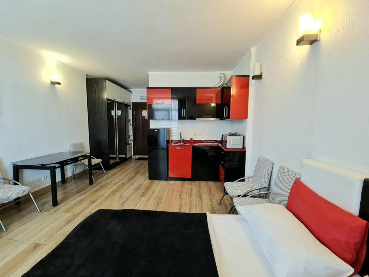Studio Apartment with Sea View. The air-conditioned apartment has 1 bedroom and 1 bathroom with a shower and a hairdryer. In the well-equipped kitchen, guests will find a stovetop, a refrigerator, kitchenware and a microwave. Boasting a terrace with sea views, this apartment also offers a washing machine and a flat-screen TV with cable channels. The unit has 1 bed. ;
