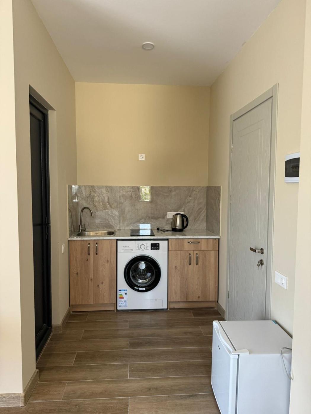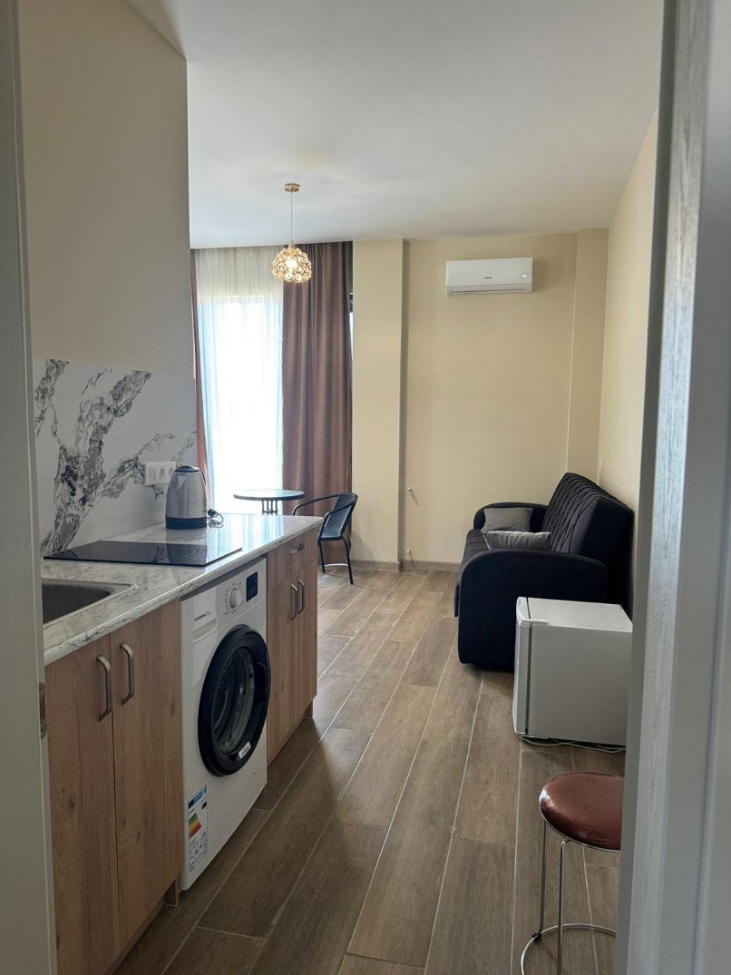 Deluxe Double Room. Guests can make meals in the kitchen that is equipped with a refrigerator, kitchenware, a microwave and a tea and coffee maker. The spacious double room provides air conditioning, a washing machine, a balcony with sea views as well as a private bathroom featuring a bath. The unit offers 1 bed.