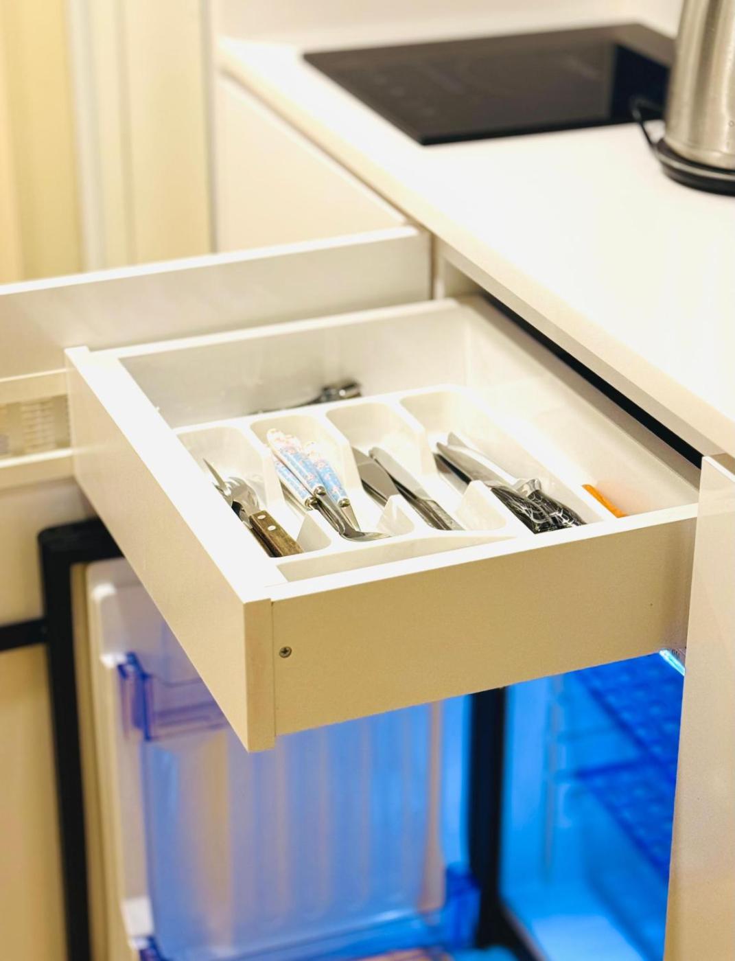 One-Bedroom Family Apartment. This apartment provides a fireplace. This air-conditioned apartment includes 1 living room, 1 separate bedroom and 1 bathroom with a bath. Meals can be prepared in the well-fitted kitchen, which has a refrigerator, kitchenware, a microwave and a tea and coffee maker. The apartment offers a flat-screen TV with cable channels, a washing machine, soundproof walls, a minibar as well as sea views. The unit has 2 beds.
