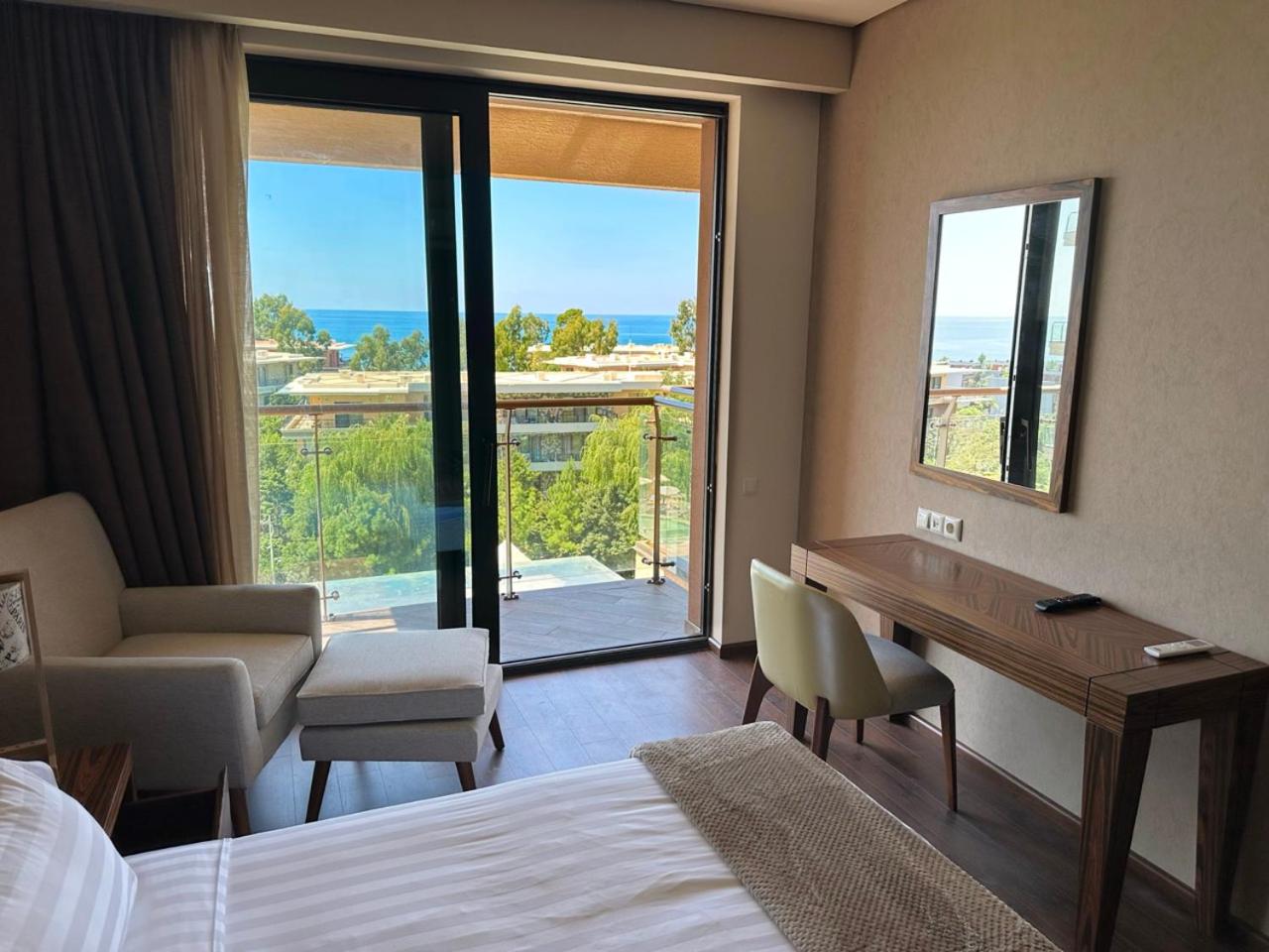 Deluxe Twin Room with Sea View. This twin room features a pool with a view. This air-conditioned twin room is comprised of a flat-screen TV with cable channels, a private bathroom as well as a terrace with sea views. The unit has 2 beds. ;