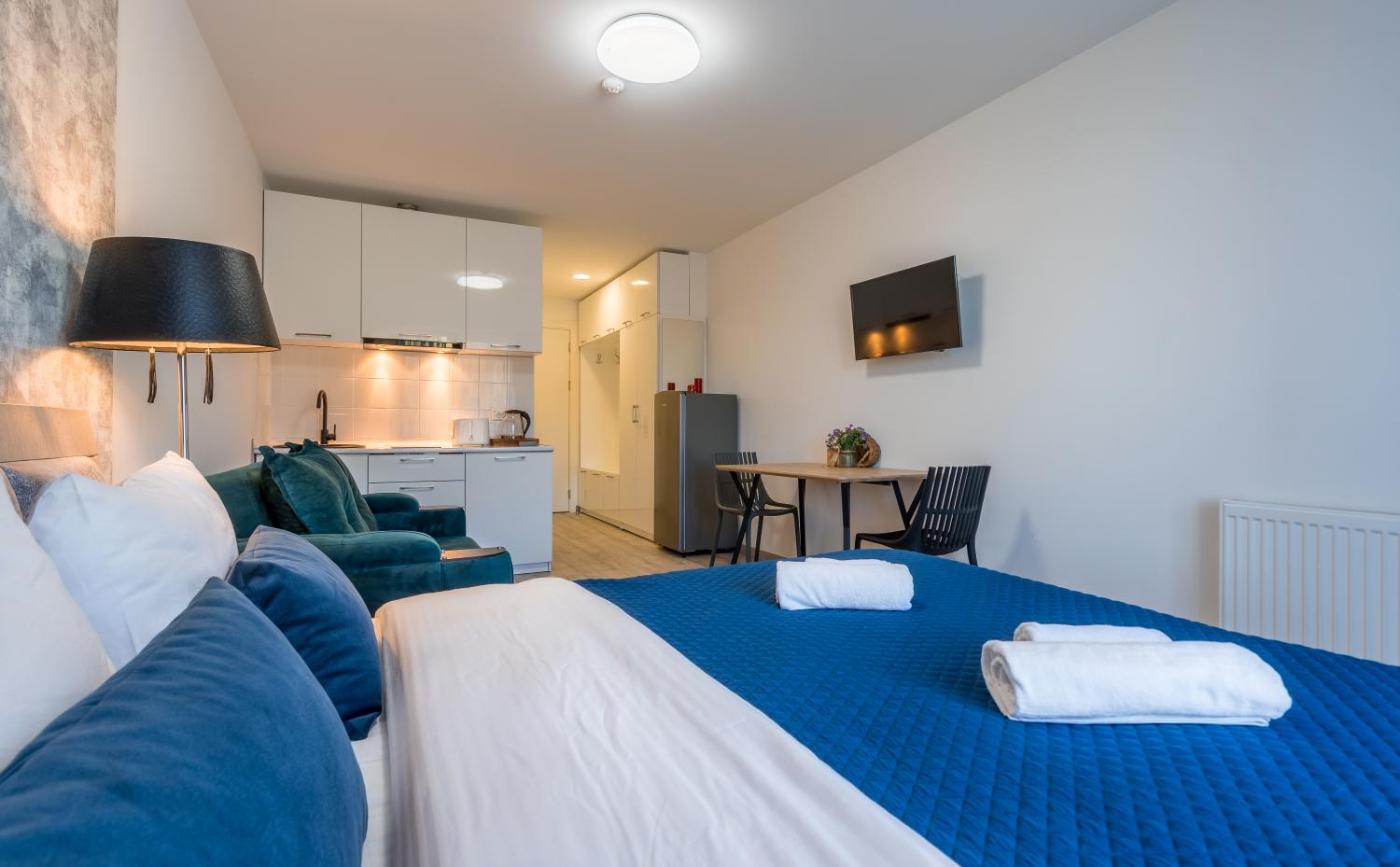 Superior Studio. Providing free toiletries, this studio includes a private bathroom with a shower, a hairdryer and slippers. In the well-fitted kitchenette, guests will find a refrigerator, kitchenware, a microwave and a tea and coffee maker. A sofa, a flat-screen TV, a seating area and heating are provided in this studio. The unit offers 2 beds. ;