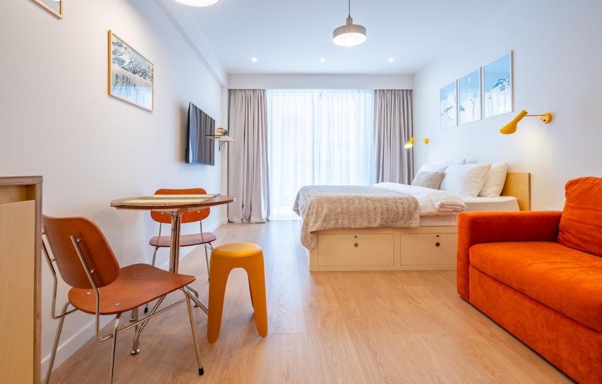 Studio with Balcony. The studios kitchen is available for cooking and storing food. This studio features a private bathroom, a washing machine, heating as well as a balcony. The unit offers 2 beds.