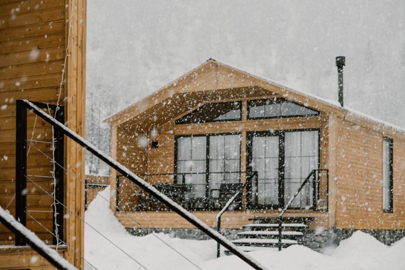 Guests can also warm themselves near outdoor fireplace after a day of skiing.