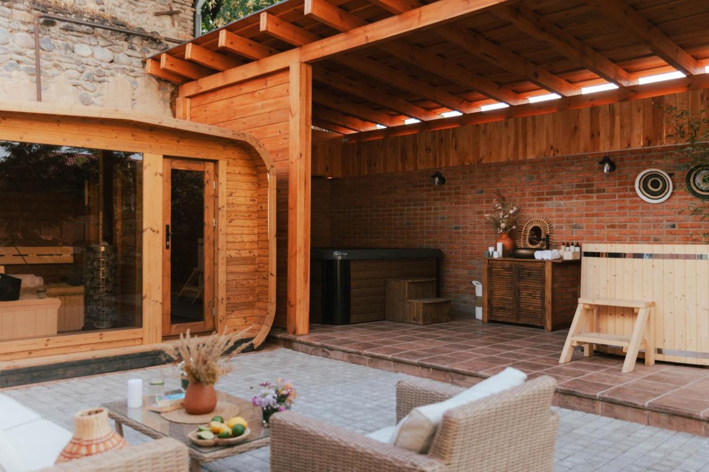 Located in Mukhrani, 38 km from Medical University Metro Station, Hameau Mukhrani provides accommodation with a garden, free private parking, a shared lounge and a terrace. Providing a restaurant, the property also has a bar, as well as a sauna and a hot tub. The hotel also features free WiFi as well as a paid airport shuttle service.