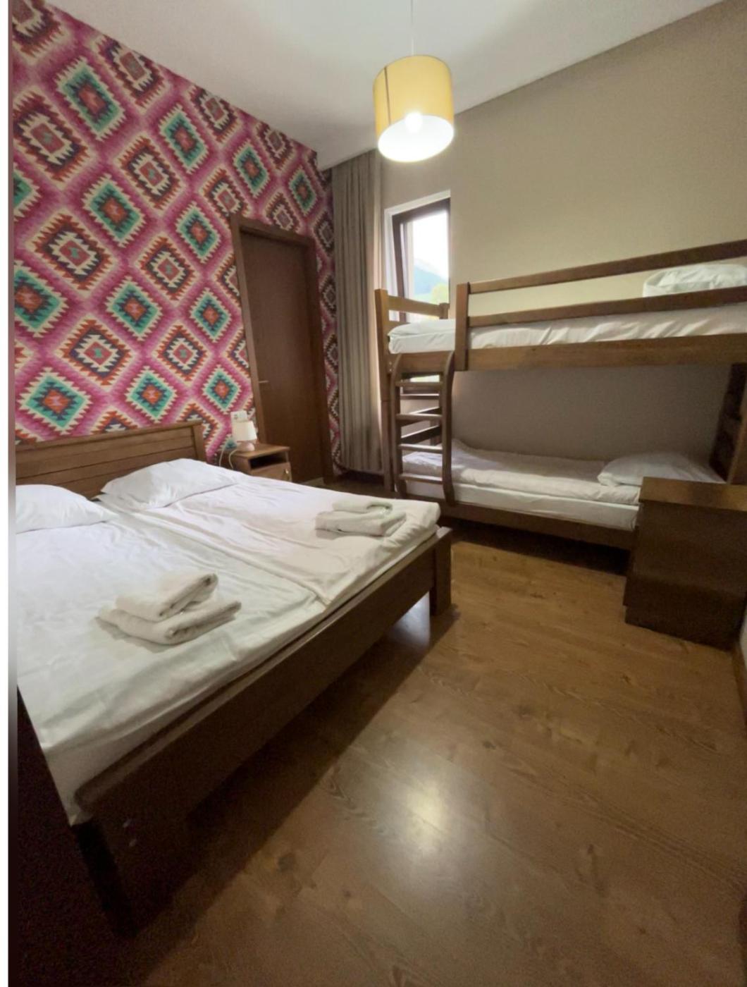 Family Room with Private Bathroom. Offering free toiletries, this family room includes a private bathroom with a bath, a shower and a hairdryer. Meals can be prepared in the kitchen, which has a stovetop, a refrigerator, kitchenware and an oven. The family room offers a tea and coffee maker, a dining area, a wardrobe as well as a balcony with mountain views. The unit has 2 beds.